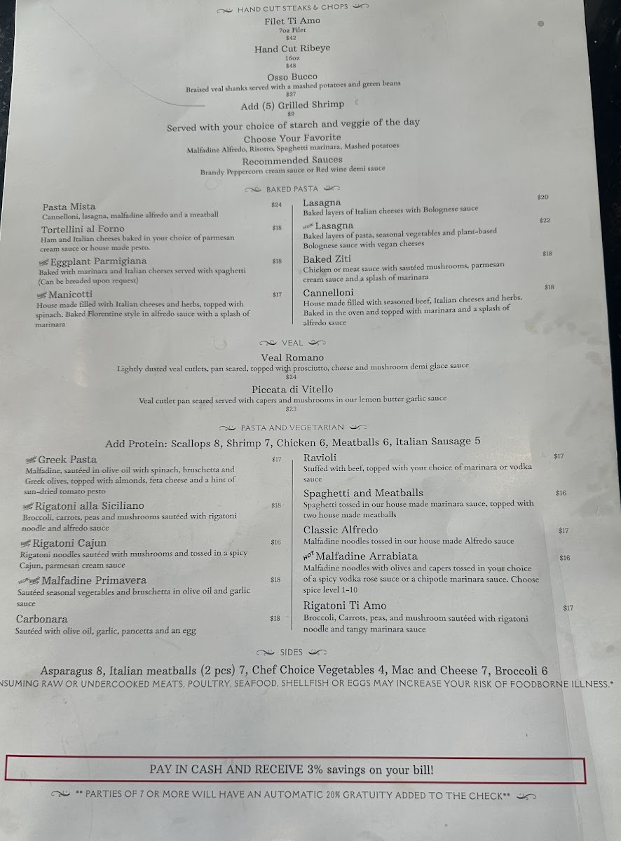 Customers rave about the fresh ingredients and generous portions, highlighting the impeccable service that enhances every dining experience. Discover the true essence of Italian fare at Ti Amo!